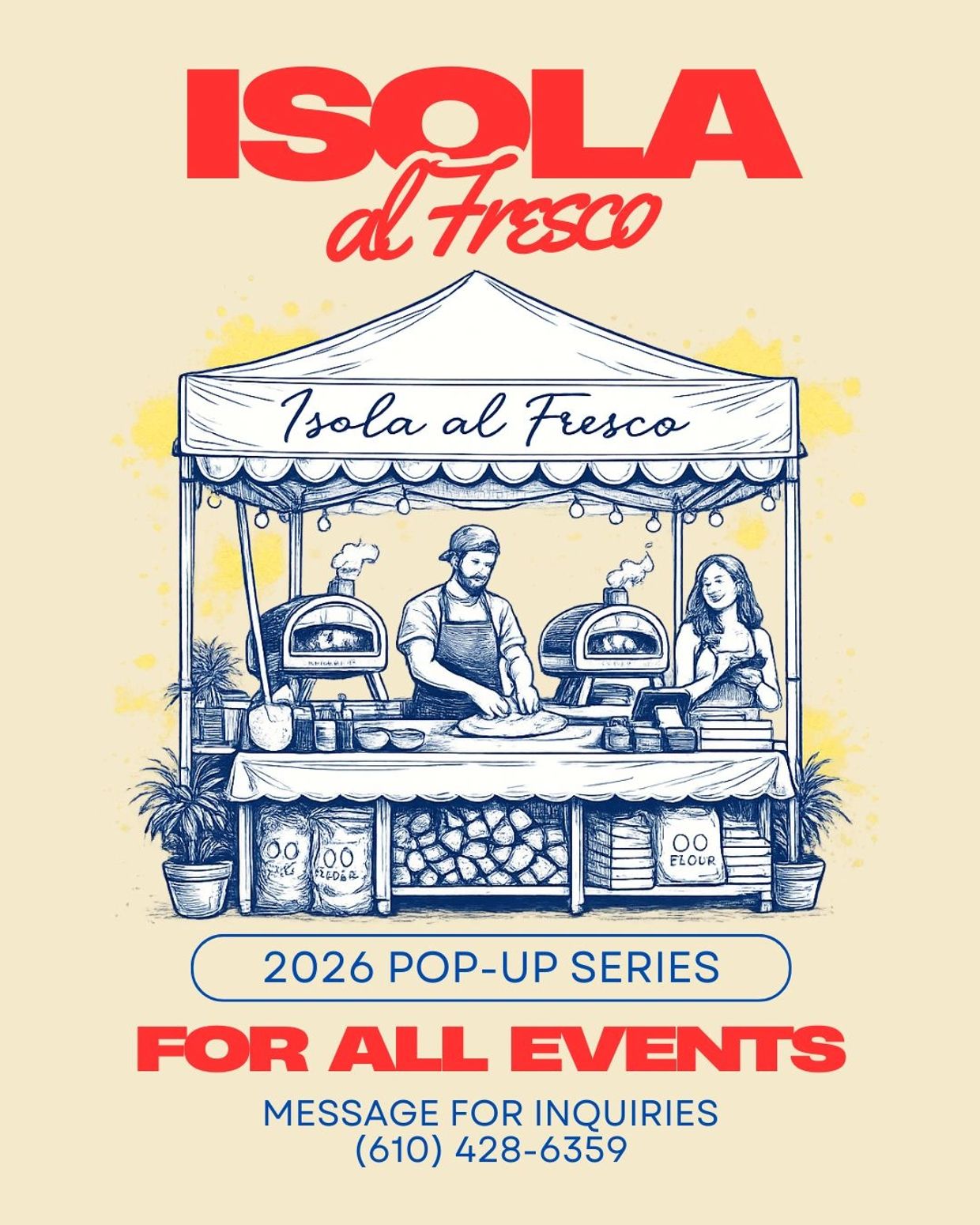 Bring the soul of Isola to your door with Isola al Fresco, our premier mobile kitchen. We provide a sleek canopy and professional wood-fired setup for high-end house calls, wedding after-parties, and private events. From signature Neapolitan-style pizzas to fresh cannoli, we handle the entire experience so you can focus on your guests.
